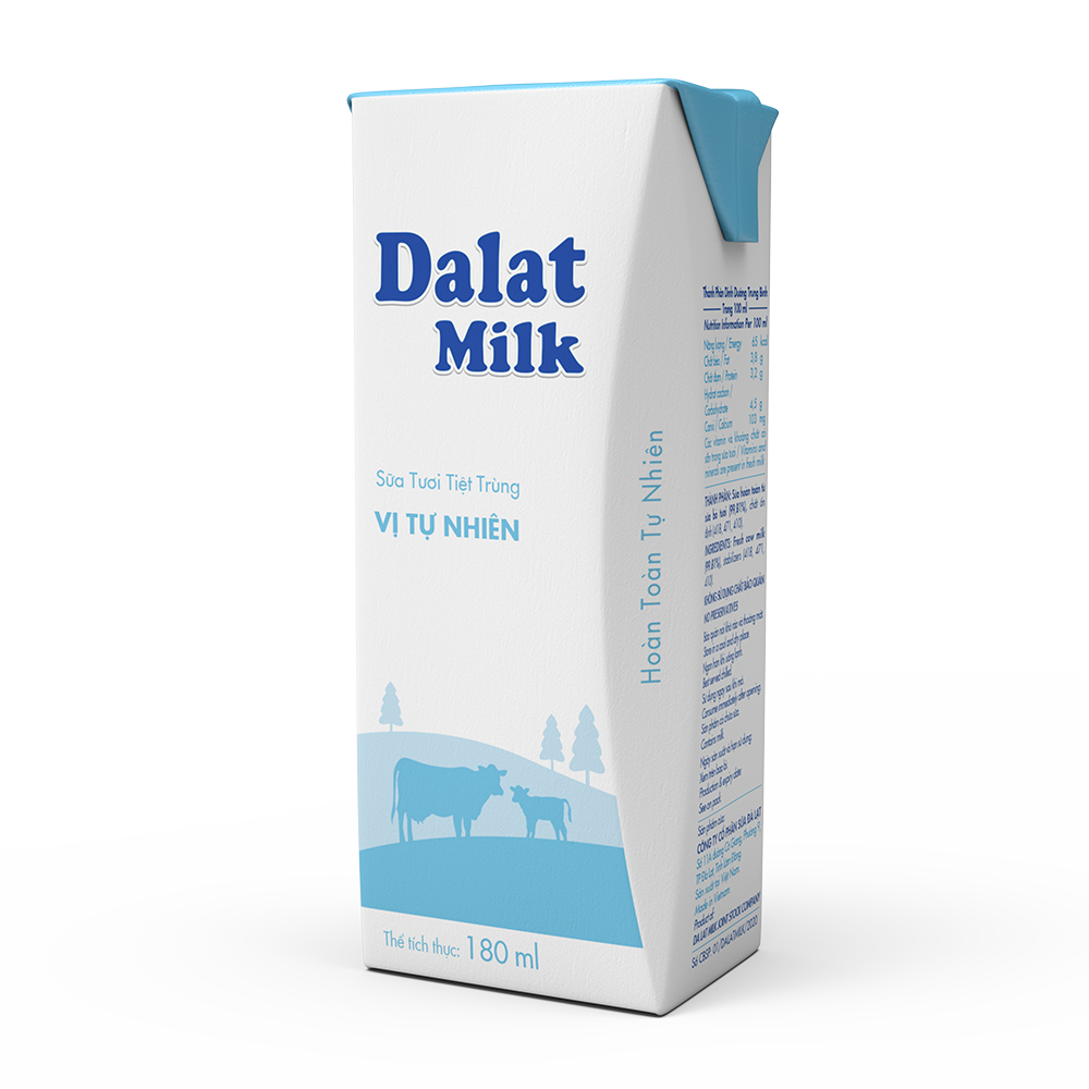 Sữa tươi tiệt trùng Dalatmilk hoàn toàn tự nhiên được sản xuất từ sữa tươi của những vùng chăn nuôi bò sữa nổi tiếng, không sử dụng chất bảo quản hoặc nguyên liệu tổng hợp.